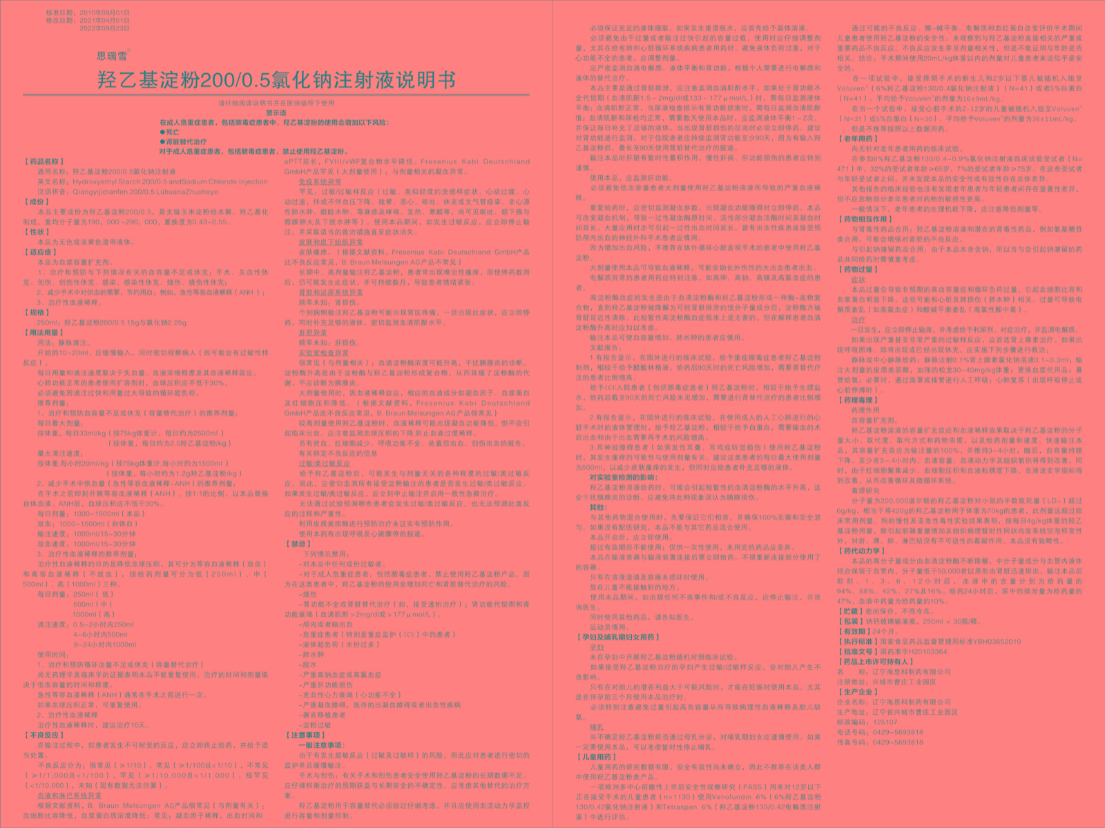 【通用名】羥乙基淀粉200/0.5氯化鈉注射液